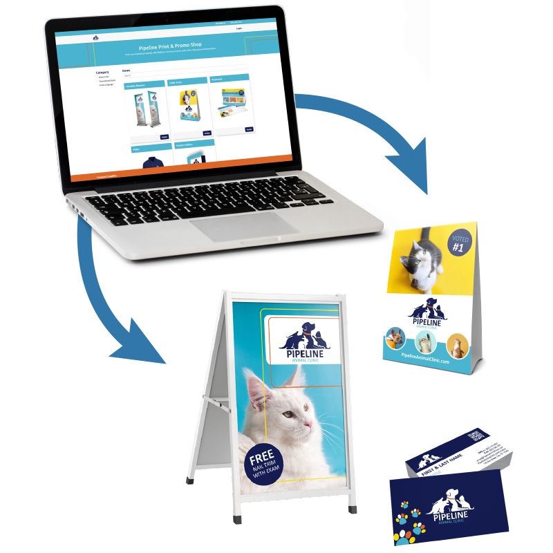 Web-to-print software, such as PortalPro, gives businesses a centralized online platform for managing their branded print materials. In just a few clicks, teams can order business cards, signage, apparel, drinkware, catalogs, direct mail, and more. Every product is built to the company’s exact specifications and uses pre-approved, on-brand designs, so branding stays consistent every time.